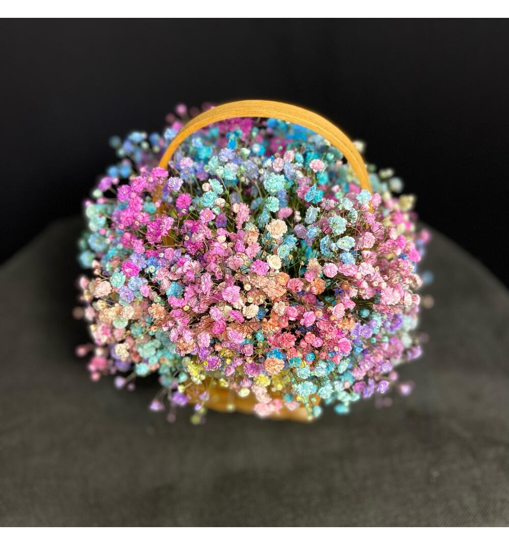 Корзинка с радугой - это чудесный букет, вдохновленный красками радуги. Яркие и разноцветные гипсофилы создают впечатление волшебства и радости. Этот уникальный букет перенесет вас в мир ярких эмоций и приятных воспоминаний. Корзинка с гипсофилами станет прекрасным подарком для любого праздника и добавит позитивных ноток в особенные моменты вашей жизни.